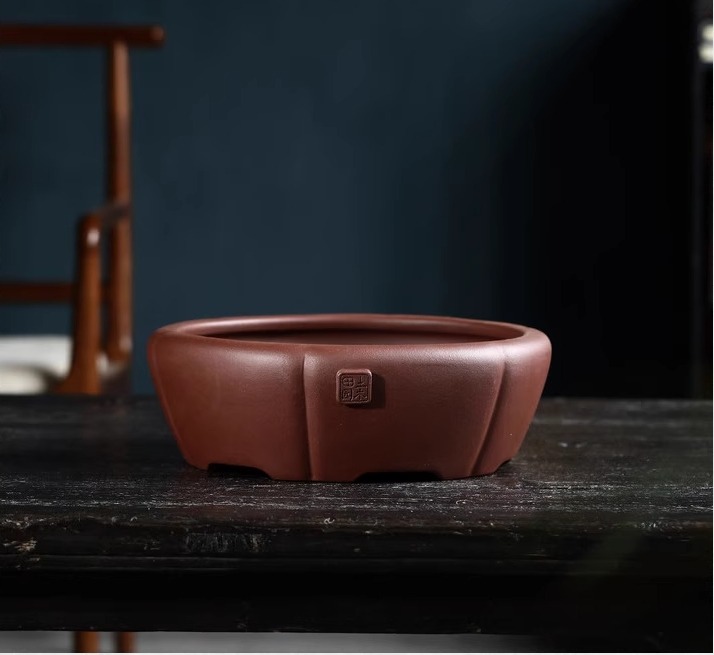 Quality handmade lotus-shaped bonsai pot China Yixing purple sand breathable bonsai pot